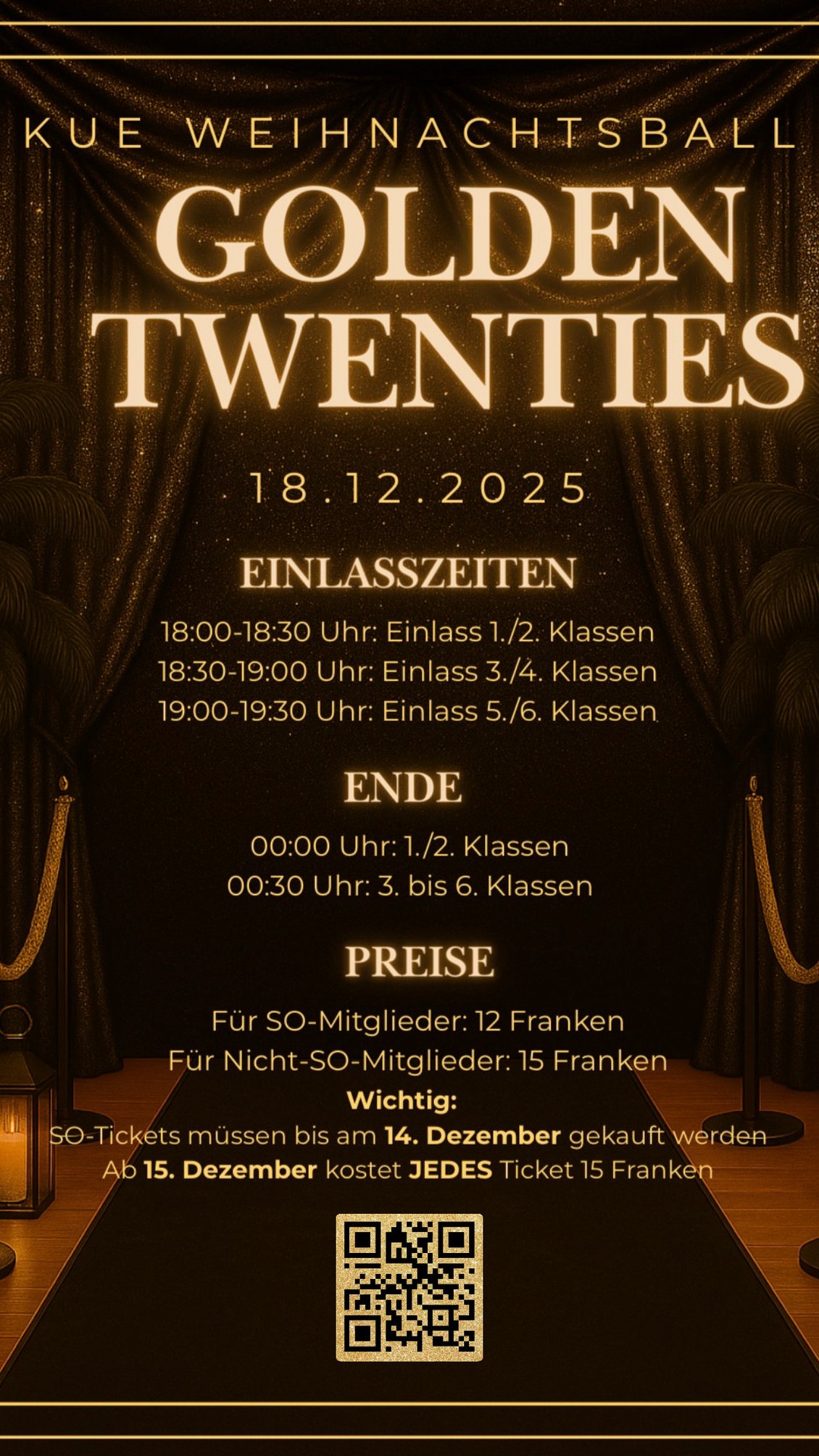 Auch dieses Jahr findet der legendäre Grossanlass statt. Der Dresscode soll elegant sein und dem Motto entsprechen. Beginn ist um 18 Uhr, es gibt einen gestaffelten Einlass (18–18.30 Uhr: 1. und 2. Klassen, 18.30–19 Uhr: 3. und 4. Klassen, 19–19.30 Uhr: 5. und 6. Klassen).