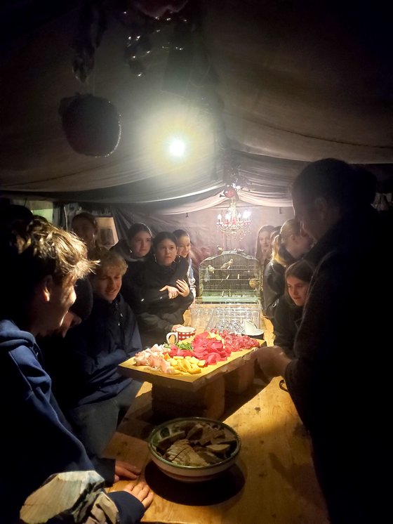 Der Bauer Nils Müller hat uns gut zwei Stunden über den Hof geführt und vieles erklärt, von der eigenen Futterproduktion über die artgerechte Haltung bis hin zur Weideschlachtung, die uns besonders beeindruckt hat. Dabei werden die Tiere direkt auf der Weide von Herrn Müller selbst geschossen, ohne Transport und ohne den Stress eines Schlachthofs. Ziel ist ein möglichst kurzer, angstfreier Moment des Sterbens und ein Umgang, der dem Leben der Tiere gerecht wird. Die Besitzer des Hofs möchten den Tieren so ein schönes und würdiges Leben ermöglichen. Die Tiere leben hier möglichst frei und selbstbestimmt.