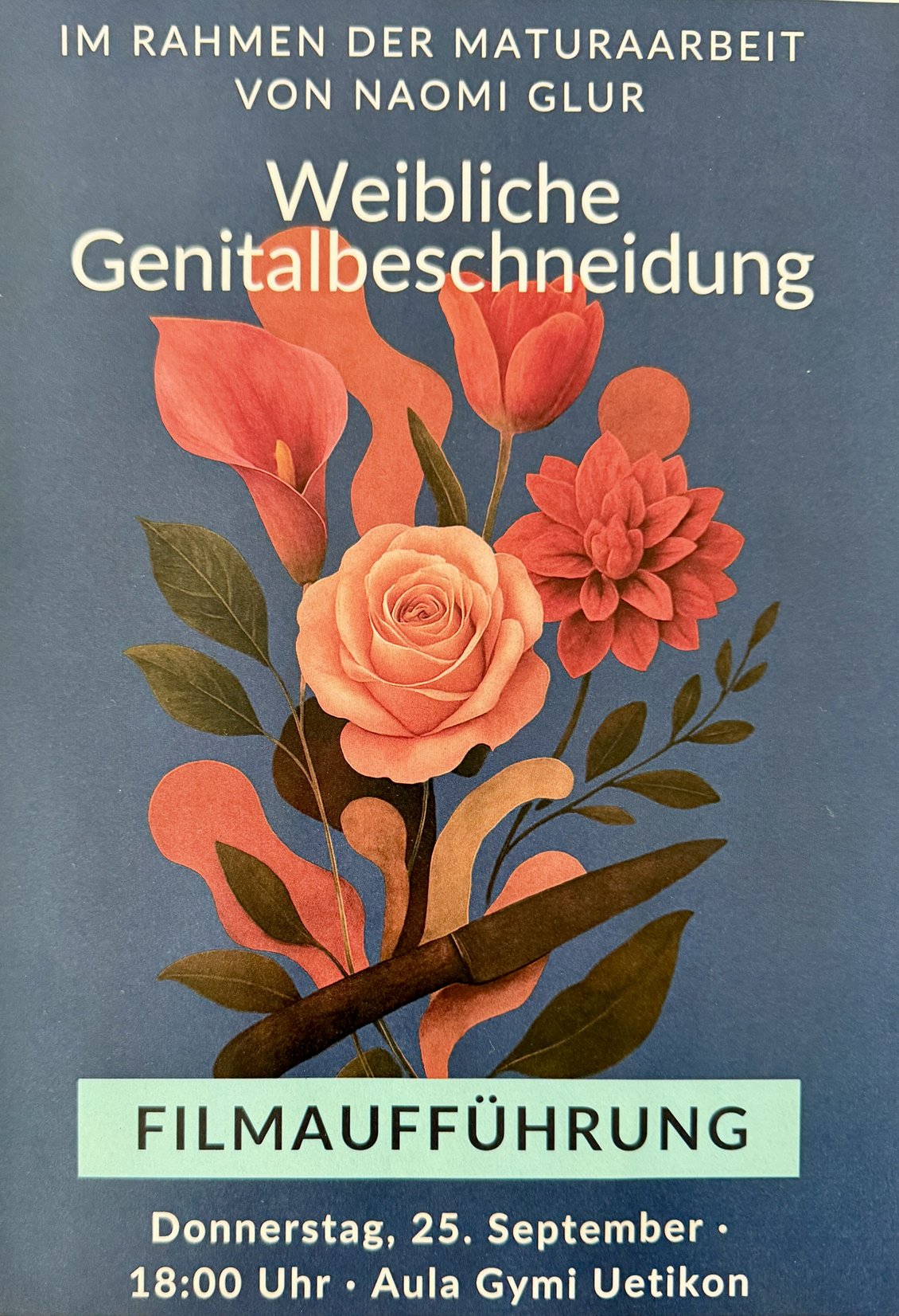 «Durch meinen Dokumentarfilm möchte ich die Realität der Betroffenen sichtbar machen und die medizinischen und psychischen Folgen näher beleuchten», schreibt Naomi Glur dazu. Sie konnte mit Sara A., einer Betroffenen, zwei Ärzten vom Kantonsspital Aarau, einer Psychiaterin und einer Mitarbeiterin von Caritas Interviews führen. Durch viel Recherche und dank der Unterstützung der Zürcher Plattform «FGMhelp» habe sie die Kontakte gefunden.