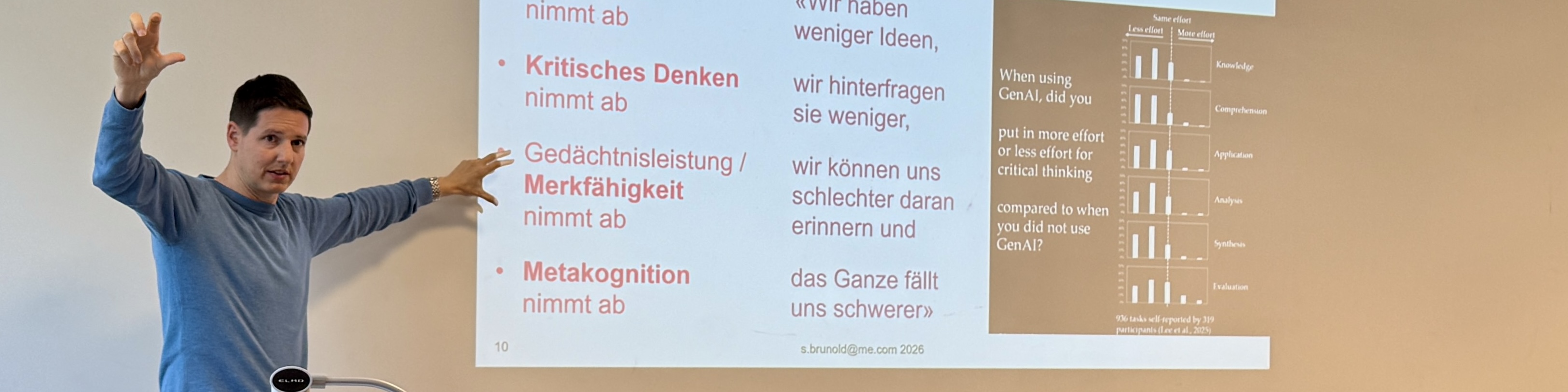 KI-Experte Severin Brunold erläuterte an einer KUE-Weiterbildung, warum man Maturaarbeiten in Zeiten von KI neu denken muss.